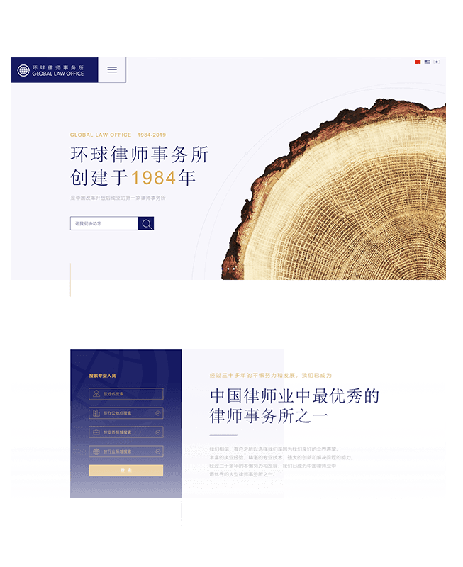 賦予頁面效果簡約高端國際水準的呈現(xiàn)效果 ,體現(xiàn)環(huán)球律所的放眼國際和行業(yè)專業(yè)水準。