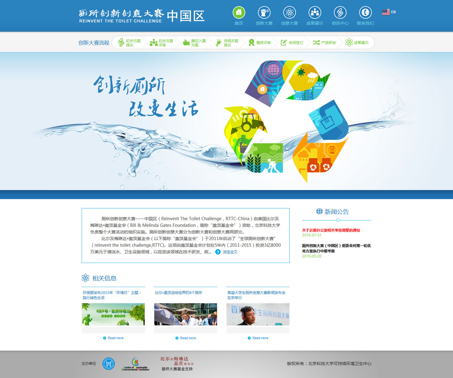 由中國人民對外友好協(xié)會、比爾及梅琳達•蓋茨基金會、北京科技大學聯(lián)合主辦的廁所革新大賽,期望利用市場導向的研究手段,促進新型、分散衛(wèi)生排水系統(tǒng)的研發(fā),從根本上改善發(fā)展中國家城市貧困人口的生活環(huán)境,成果應能夠滿足市場需求。