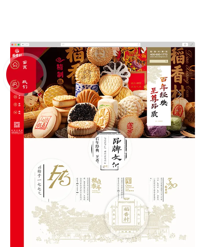 稻香村在開辟了線上營銷后,逐漸認識到線上品牌官網(wǎng)的重要。線上官網(wǎng)作為線上營銷的重要品牌背書,原有網(wǎng)站太過老舊,而且品牌感很弱。
