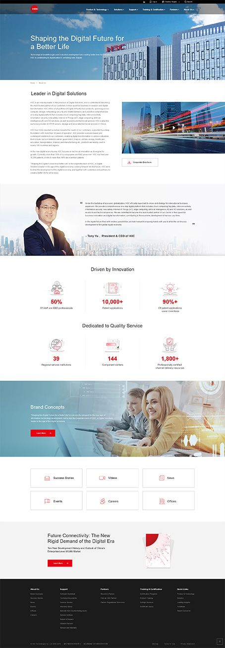 新華三集團(H3C)是國內(nèi)大型ICT廠商。在許多商用產(chǎn)品領域處于領導地位。2019年是新華三集團的國際化元年。海外市場發(fā)展迅猛。因此,將企業(yè)形象從國內(nèi)大廠升級定位為跨國集團,已經(jīng)是H3C發(fā)展戰(zhàn)略的迫切需要。