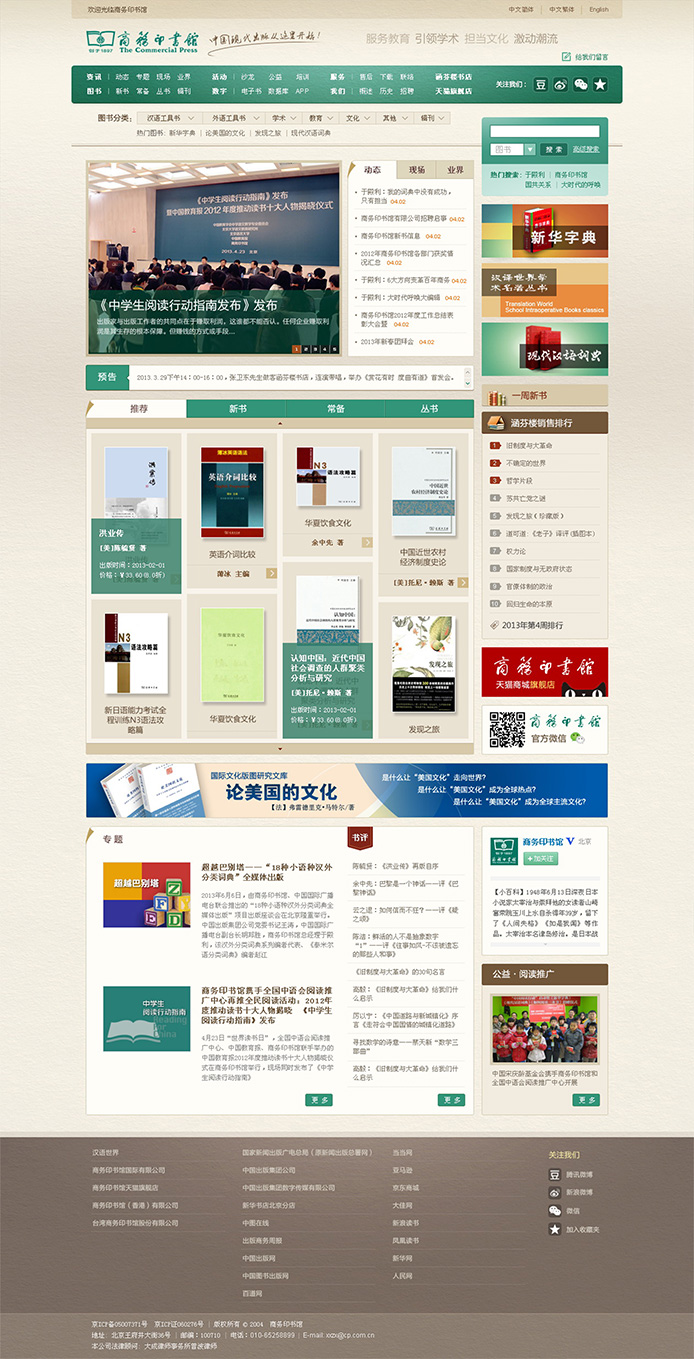 在遇到上云之前,商務(wù)印書(shū)館曾不止一次地推動(dòng)官網(wǎng)改版,但都以失敗告終。擁有百年歷史的商務(wù)印書(shū)館,官網(wǎng)是一個(gè)承載著深厚品牌文化積淀的傳播載體,也承擔(dān)著具備復(fù)雜內(nèi)容發(fā)布邏輯的責(zé)任。在設(shè)計(jì)之前,上云在商務(wù)印書(shū)館內(nèi)部展開(kāi)調(diào)研,并對(duì)各業(yè)務(wù)部門(mén)的需求和領(lǐng)導(dǎo)的期望做了全面的分析和深刻的總結(jié)。2013年,上云順利完成了商務(wù)印書(shū)館官網(wǎng)重新改版上線,并沿用至今。